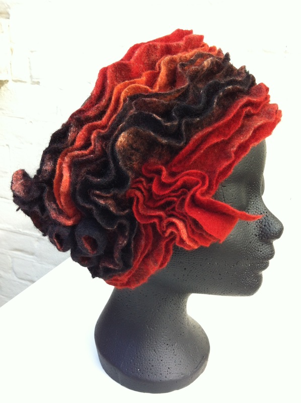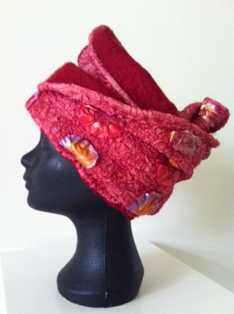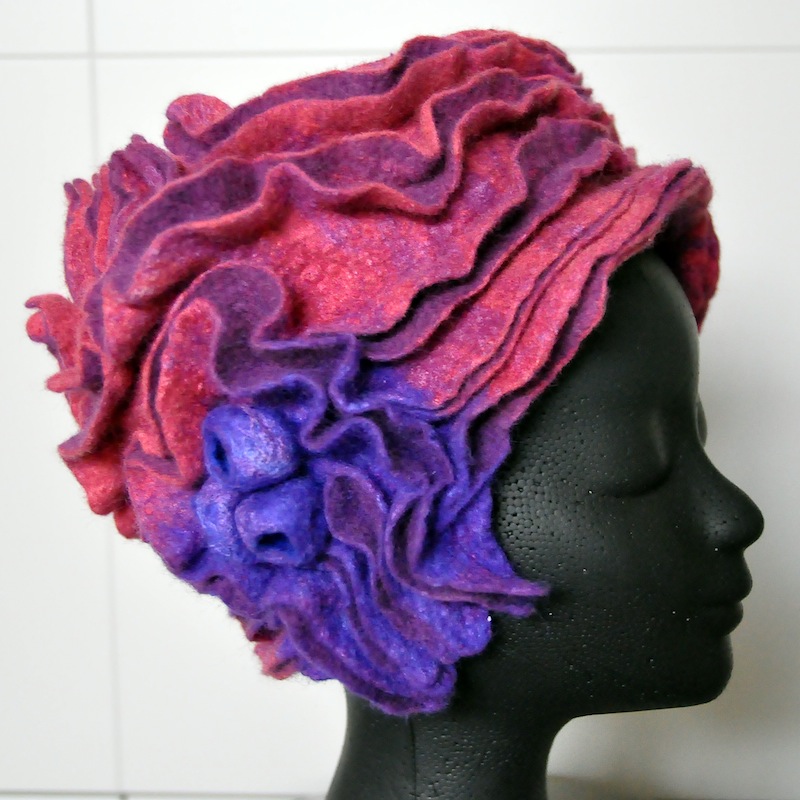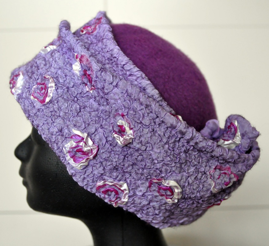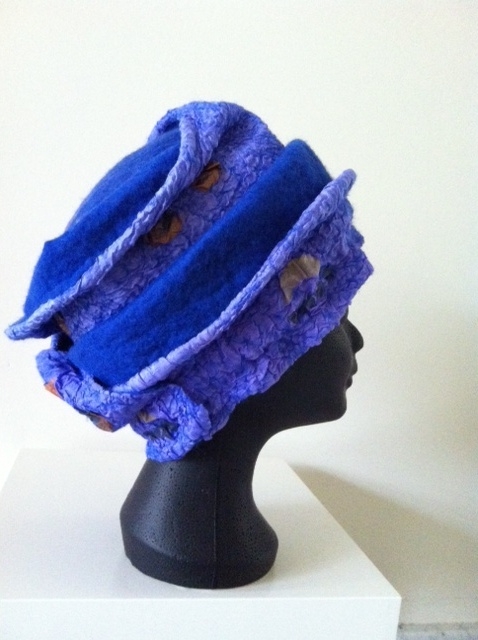 Bij Vera Holland leerde ik bijzondere hoeden maken van merinowol met pongézijde; een voorbeeld:
