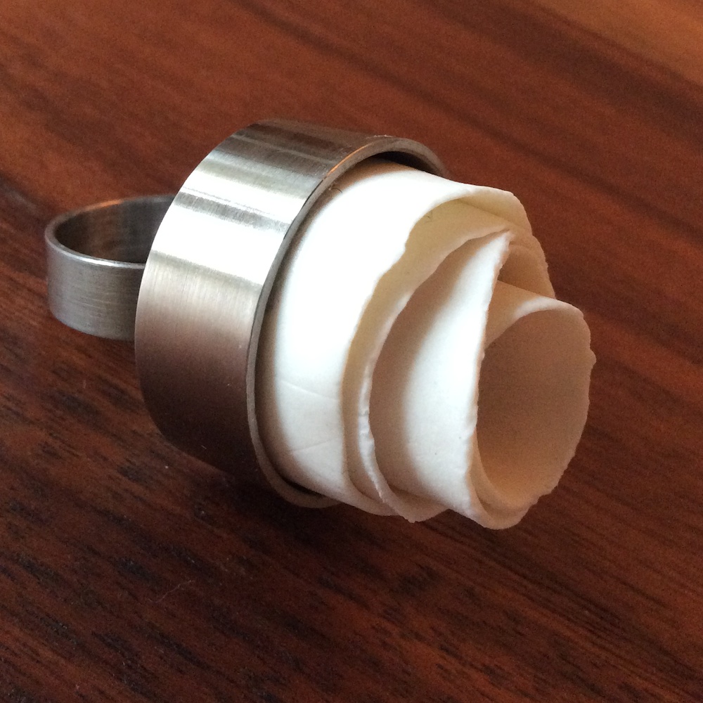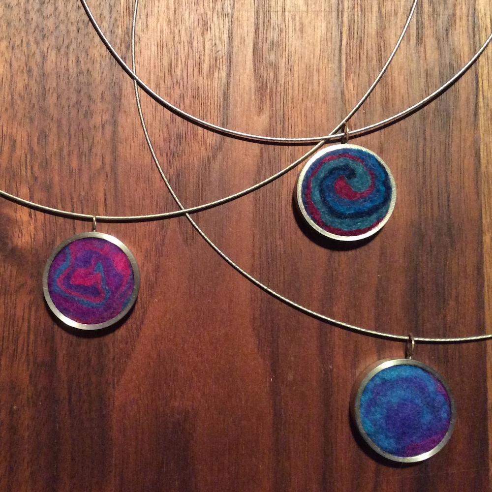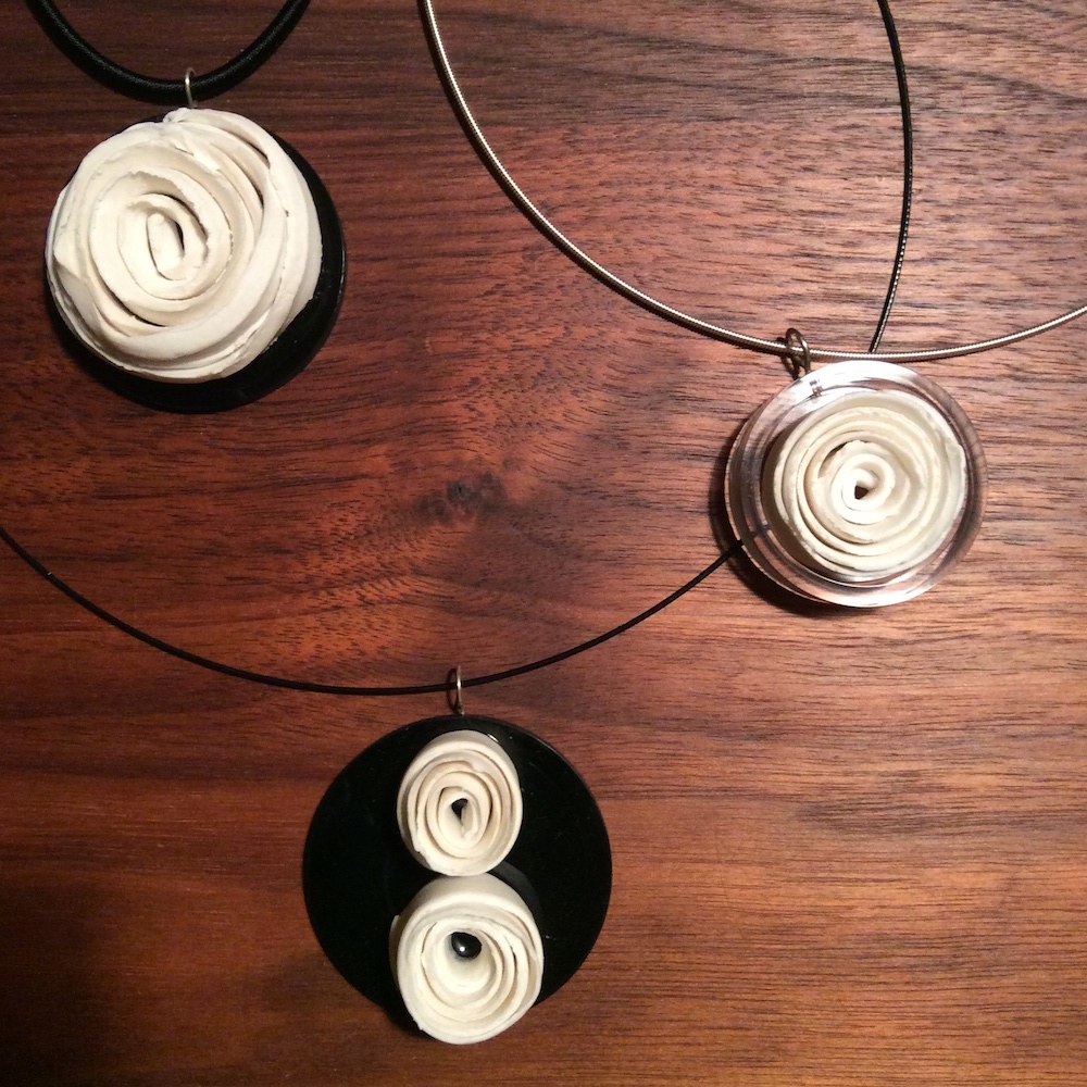 De laatste tijd heb ik me toegelegd op het maken van sieraden. Door een toeval (?) kwam ik in contact met Ad van Amelsfort, een man die al jaren bezig is met o.a. het materiaal rvs. Samen zijn we nu een sieradenlijn begonnen, waarbij Ad het rvs gedeelte voor zijn rekening neemt en ik het porselein en/of het vilt.