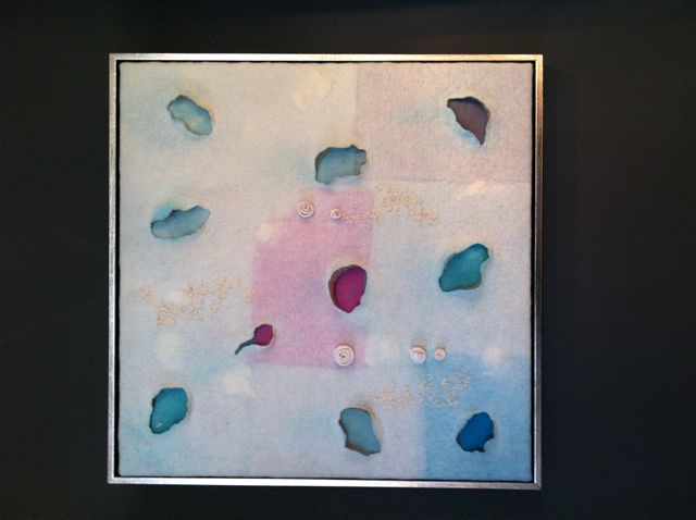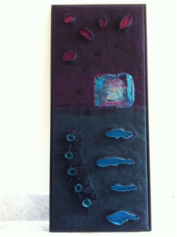 Op het gebied van ruimtelijk vilten heb ik weer een nieuwe stap gezet: wandkleden. Omdat vilt zowel een isolerende als geluidsabsorberende werking heeft, kan het in de ruimte een aangename werking hebben. Die ervaring bracht mij tot het maken van enkele wandkleden, in dit geval met een relief.