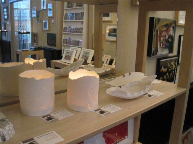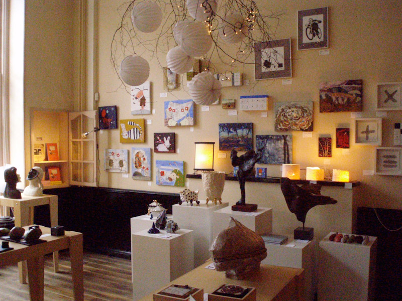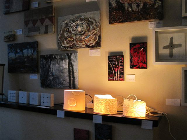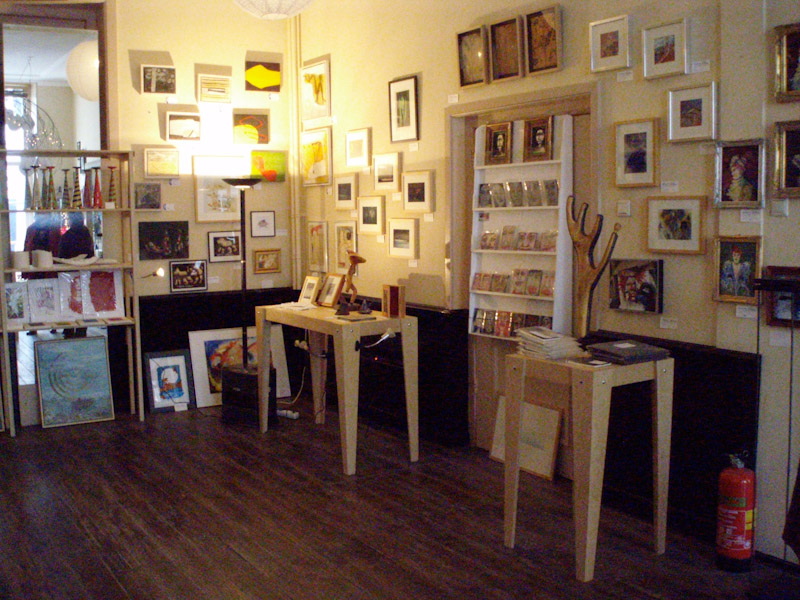 Inmiddels zijn we, onder de bezieling van Wim Habraken en Gerard van Selst, met een aantal kunstenaars gestart met de expositie en verkoop van ons werk in de 'Kunstwinkel Hinthamerstraat 100' in ’s-Hertogenbosch. Ook hier weer veel kontakten met kunstenaars uit verschillende disciplines, zoals schilderen, beeldhouwen, keramiek, zeefdruk, gemengde technieken, vilt, textiel…. Het werk dat te zien en te koop is, is dus heel divers en varieert in prijs vanaf enkele euro’s tot € 300,--. Echt een aanrader om er af en toe binnen te lopen, want er is regelmatig nieuw werk!