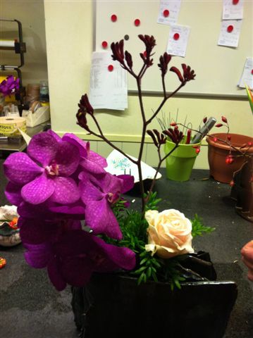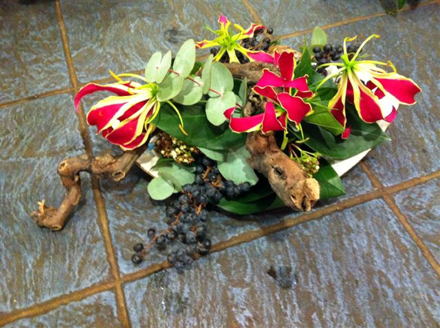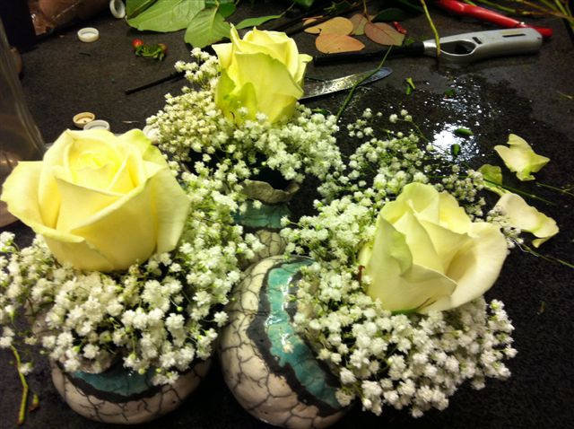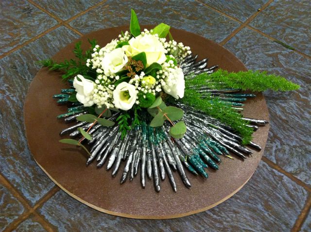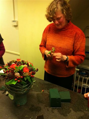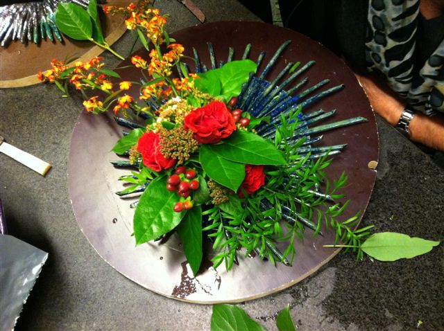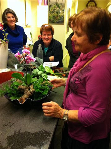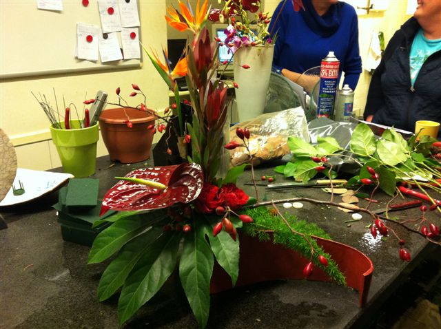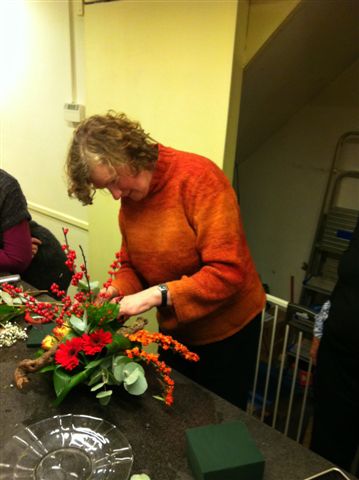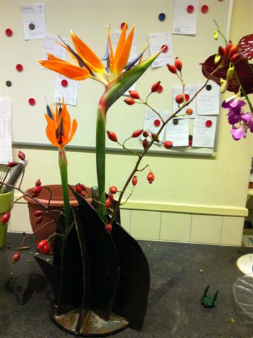 We gingen na een heel inspirerende en gastvrije avond met prachtige bloemobjecten en het hoofd vol opgedane ervaringen naar huis, om vervolgens de dag erna in de cursus weer aan een nieuwe uitdaging te beginnen. Hopelijk werkt het fotoverslag verhelderend: