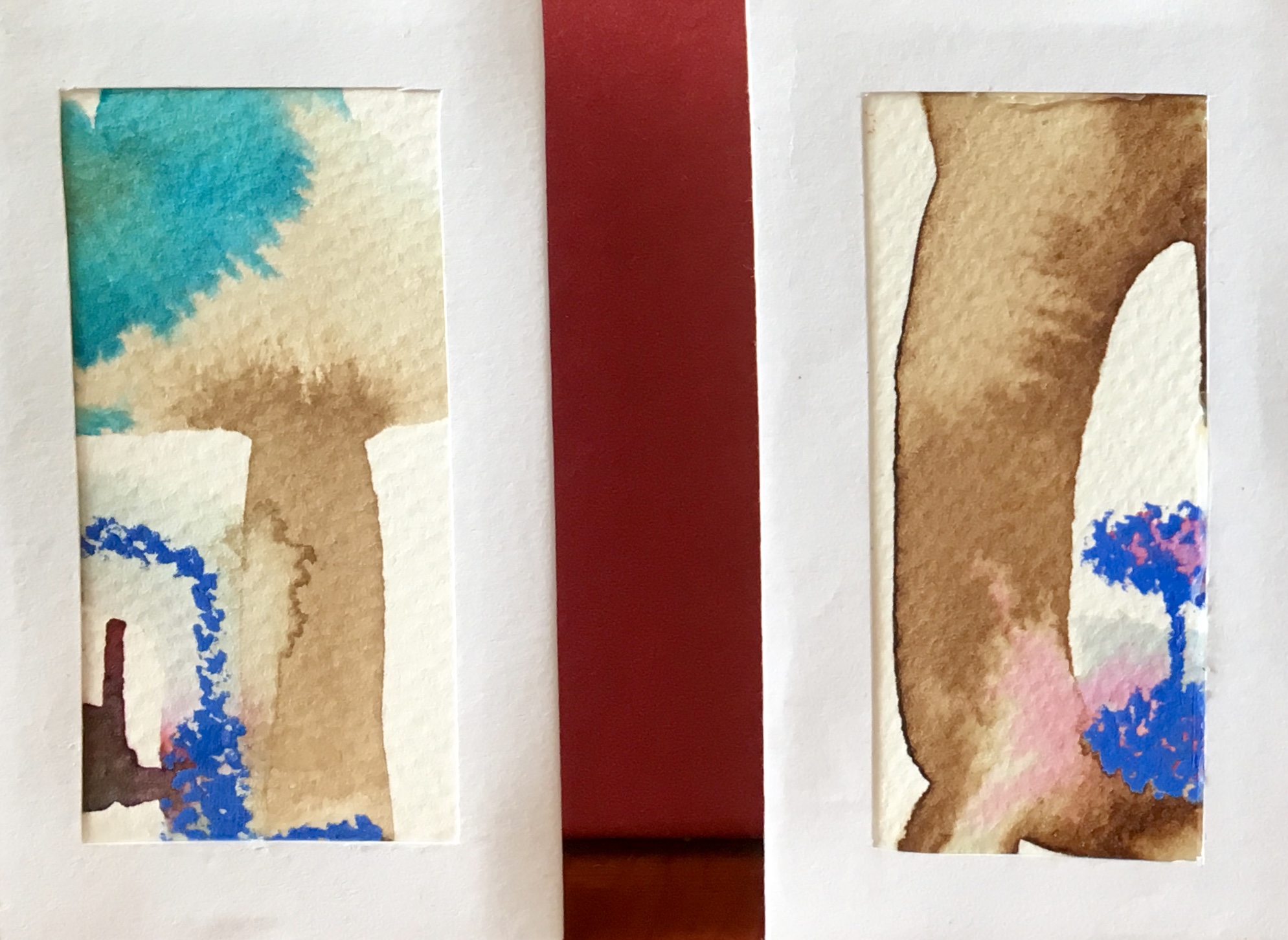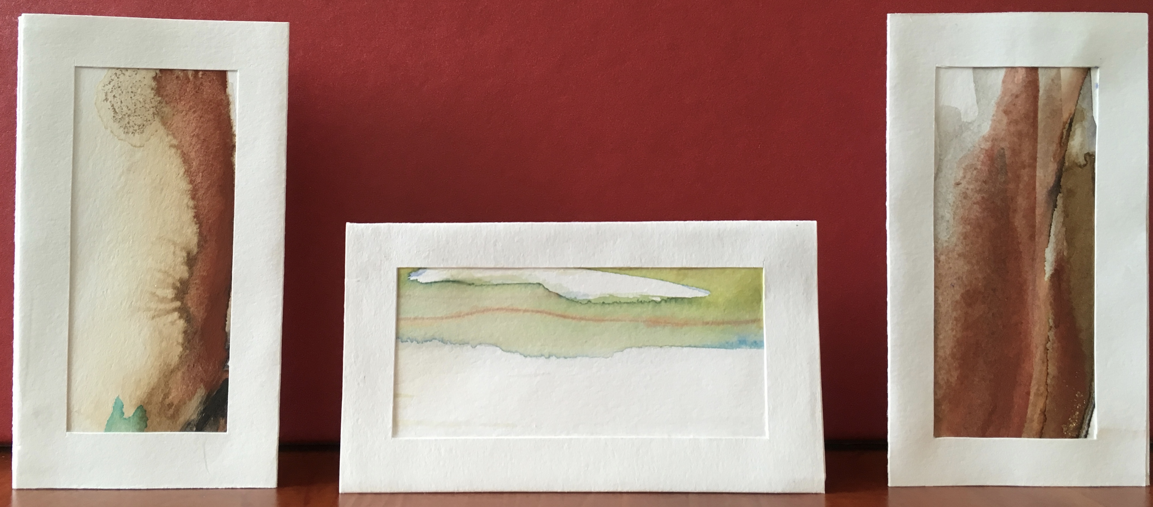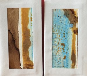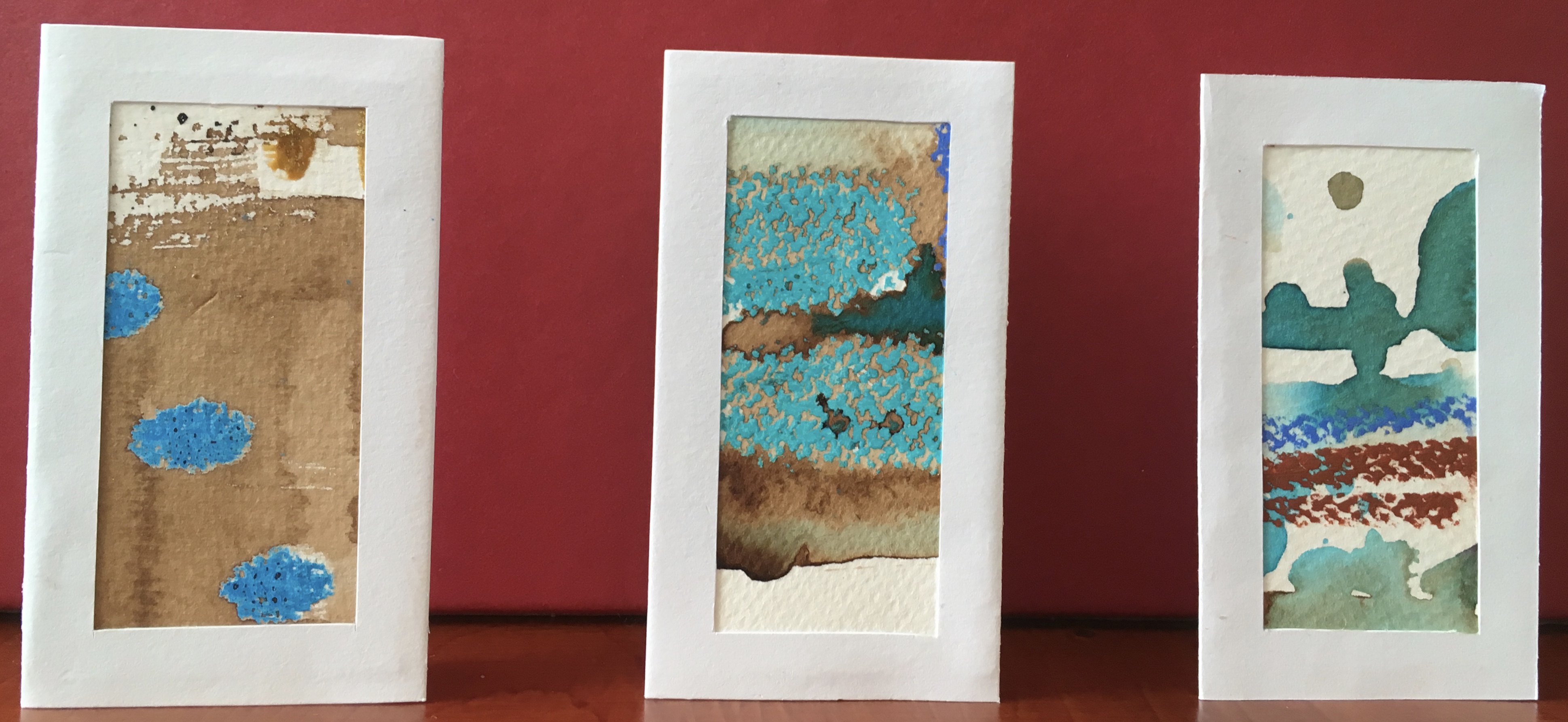 Het gaat goed met Pakje Kunst, zo goed, dat de automaten weer opnieuw zijn gevuld! Ik heb met plezier gewerkt aan deze miniatuurtjes van ca. 9 x 5 cm. in een passe-partout met standaard.