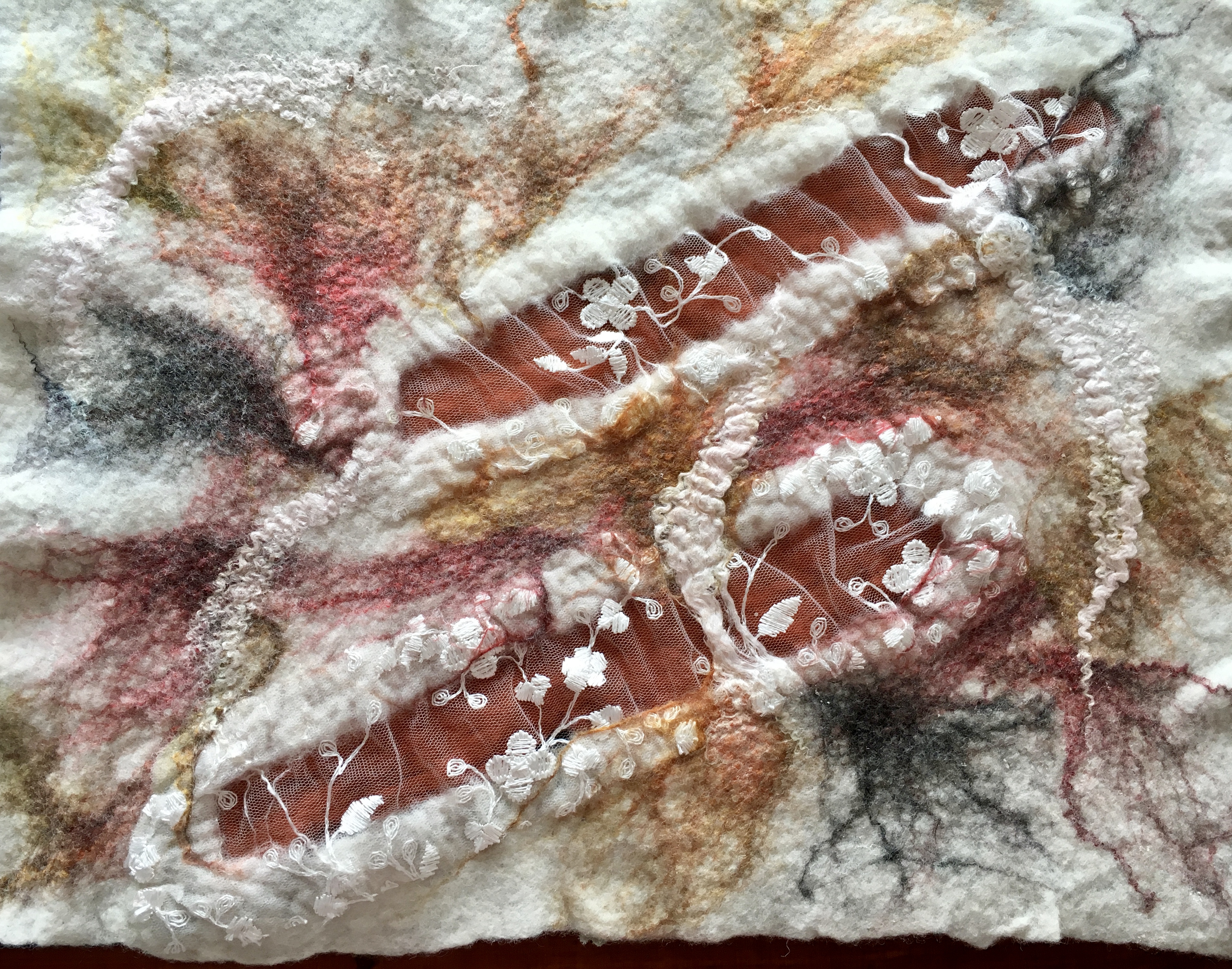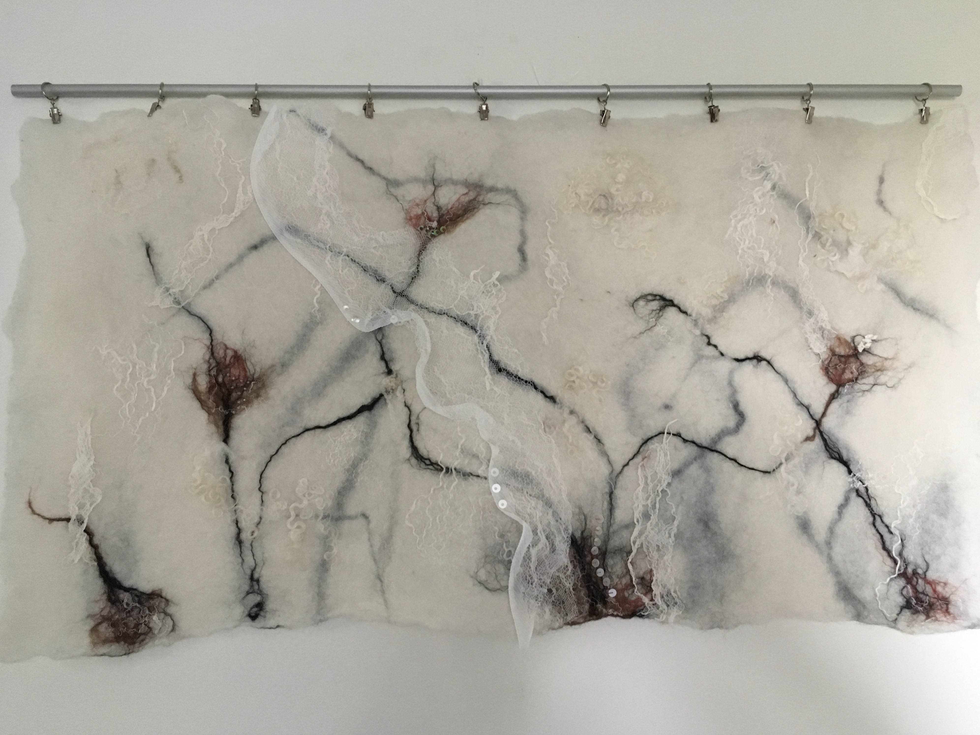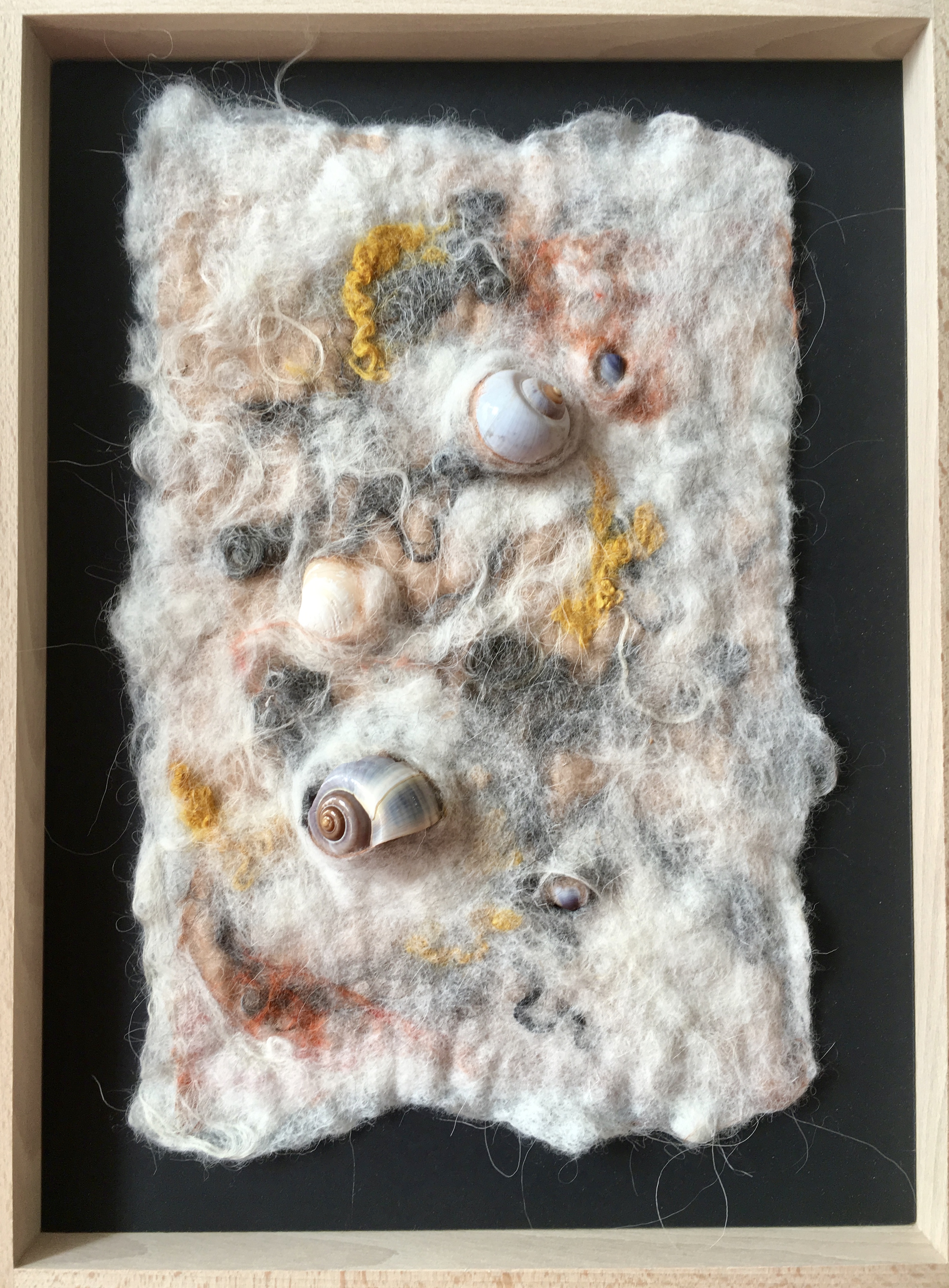 De foto’s geven een indruk van de sfeer in het kerkje en van het werk dat ik daar heb kunnen tonen, zowel vilt als porselein.